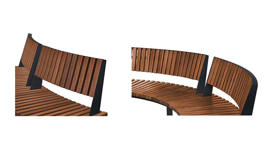 Banca Malaga permite realizarea a nenumărate configurații posibile cu forme sinuoase, drepte sau chiar total circulare (înconjurătoare de copaci, jardiniere etc).