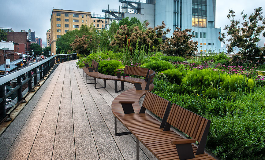 Face parte din colecția de mobilier stradal Malaga: șezlong, coș de gunoi, jardinieră și masă de picnic.