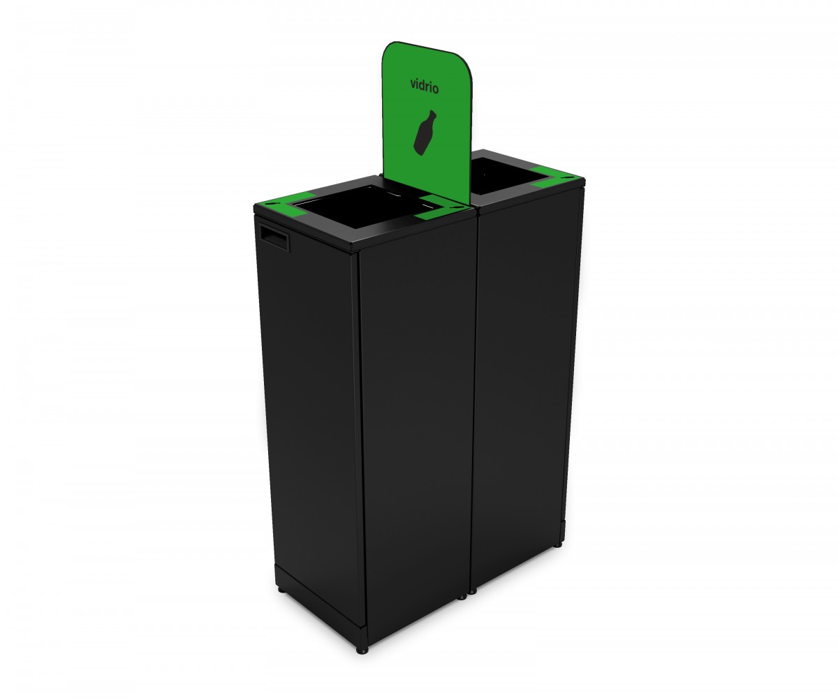 - Modular: poate fi instalat individual sau ca stații de reciclare formate din mai multe pubele unite între ele. Pubelele pot fi conectate între ele prin oricare dintre fețele lor laterale sau din spate, permițând formarea de stații alungite sau pătrate. (element de conectare bin-to-bin furnizat împreună cu recipientul)